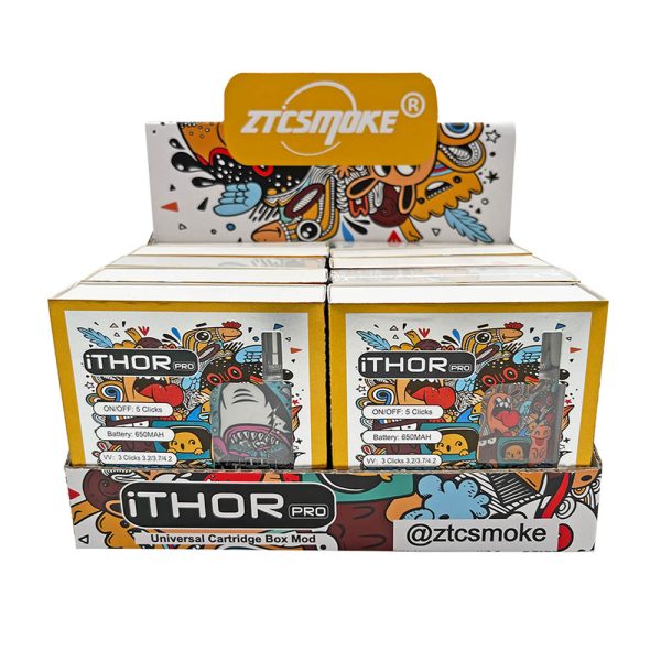 Product Specifications:Model: iTHOR ProType: 2-in-1 Vaporizer (CBD Oil & Wax)Material: Zinc Alloy + ABSPackaging: Display of 10 Units Size: 60 × 37 × 17.3 mm Battery Capacity: 650mAh