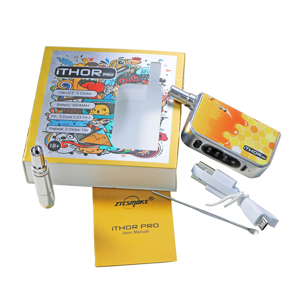 The ZTCSMOKE iTHOR Pro 2-in-1 Vaporizer is a compact, high-performance vaporizer mod designed for both CBD oil cartridges and wax concentrates. As the upgraded version of the original iTHOR, the Pro model features a larger 650mAh battery, expanded voltage options, and an intelligent digital LED display for enhanced control and usability.