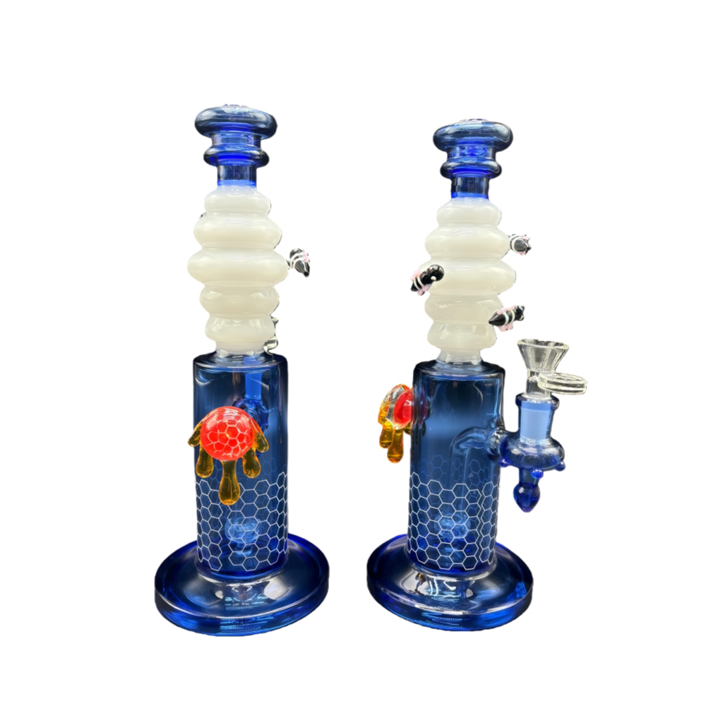 Featuring a shower head percolator, this bong enhances water filtration for cooler and smoother hits. The unique honey bee design adds an eye-catching, playful aesthetic, making it perfect for collectors and everyday users alike. Its 10-inch height provides a compact yet effective smoking experience.