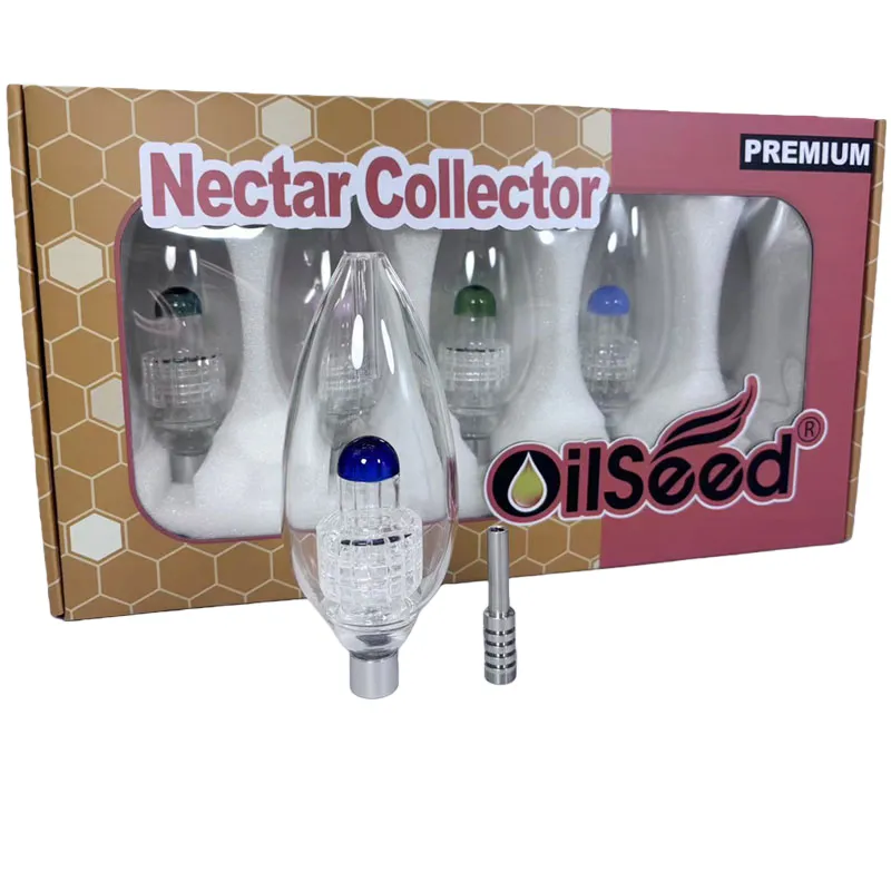 Experience smooth, stylish dabbing with the OilSeed Wig Wag Bulb Nectar Collector Kit. Crafted from high-quality glass, this 5-piece set features a colorful wig wag bulb design and a 14.5mm ground joint for a clean, secure connection. The included glass mouthpiece and tip ensure durability and flavor-forward performance every time.