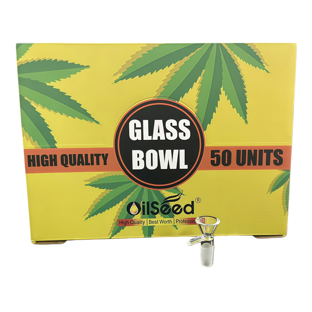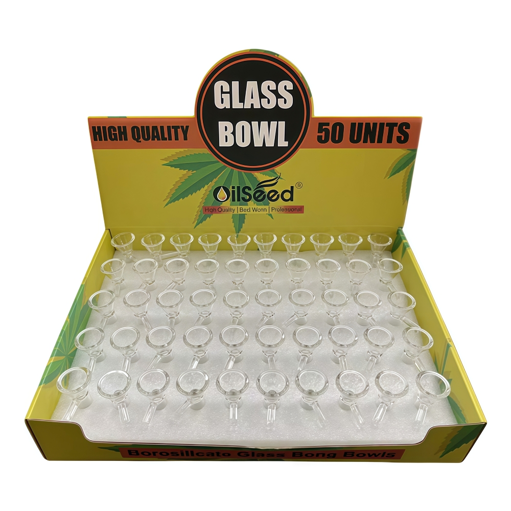 OilSeed Clear Glass Bowl – 14mm Male Joint | 50 PCS Display Box | 20 Displays per Case