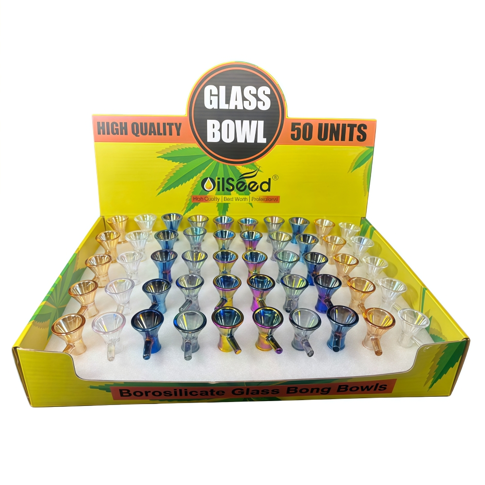 OilSeed Mix colors Glass Bowl – 14mm Male | 50 PCS Display Box | 20 Displays per Case