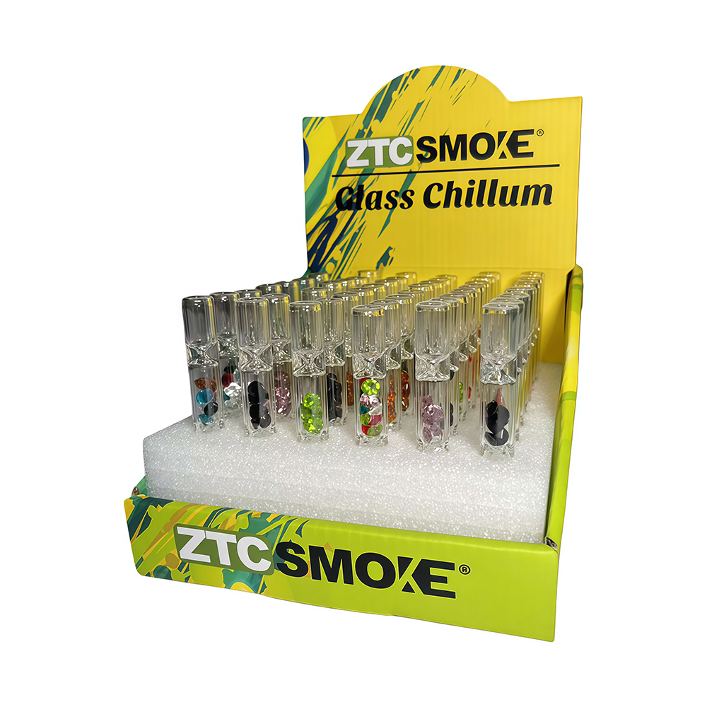 OilSeed Chillum Glass One Hitter Pipe with Crystal Diamond – 48 PCS Display | 12 Displays per Case