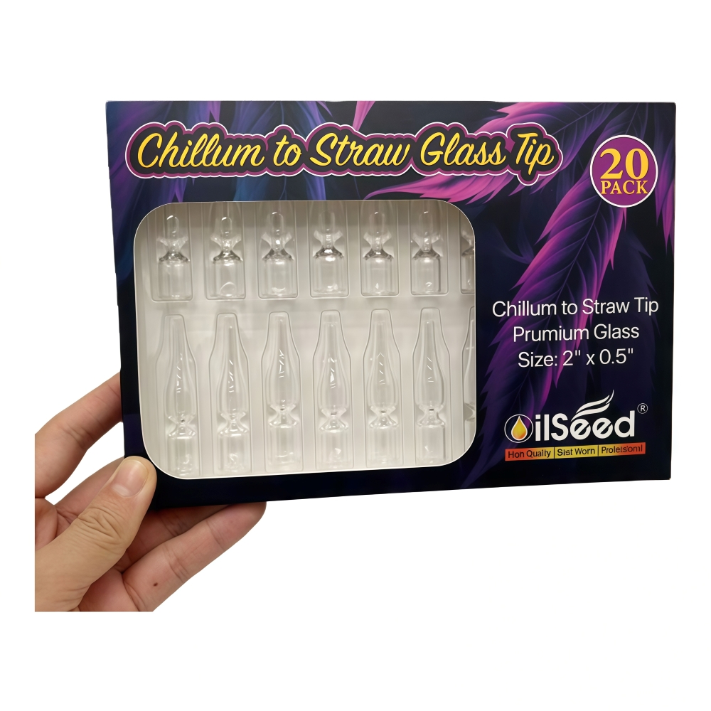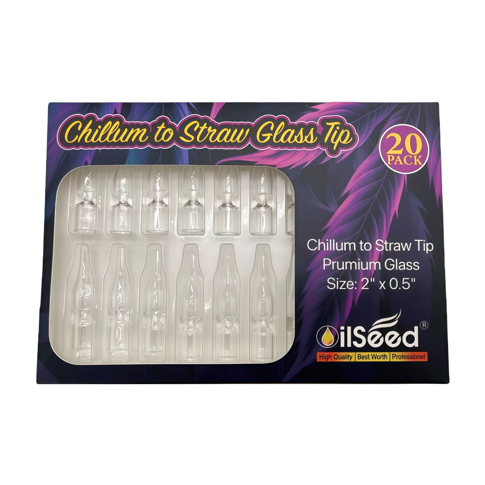 The OilSeed Chillum-to-Straw Pyrex Replacement Tip is designed for durability, heat resistance, and smooth performance. Made from high-quality Pyrex glass, this 2-inch replacement tip is ideal for use with chillums and nectar collectors, offering clean airflow and efficient heat transfer.