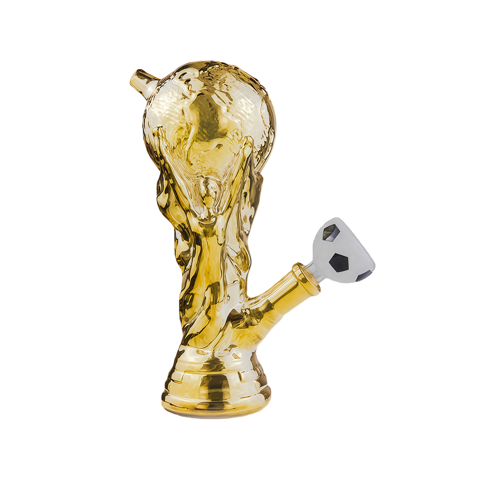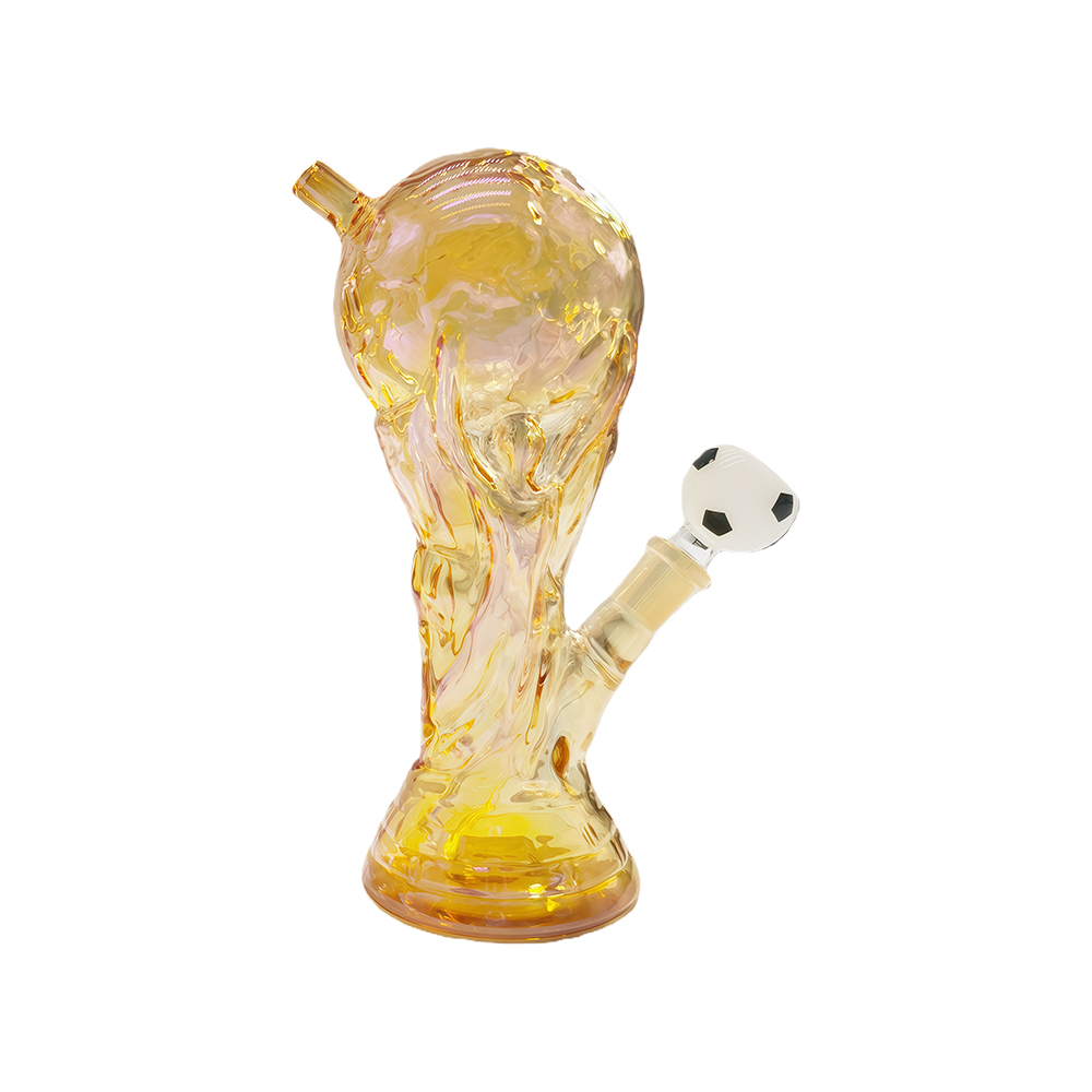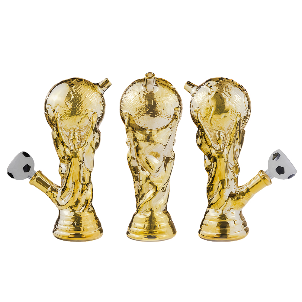 The Oilseed World Cup Glass Water Pipe features a bold, trophy-inspired design paired with premium materials. Made from 100% borosilicate glass and finished with an elegant electroplated gold coating, this compact water pipe delivers smooth performance with standout visual appeal.