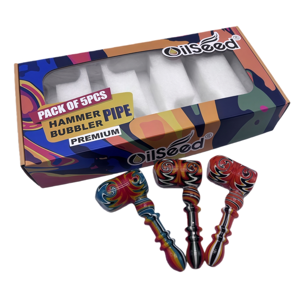 OilSeed Premium Wig Wag Hammer Pipe – Multicolor | 5.0″ Length | 5 PCS Pack | 16 Displays/Case