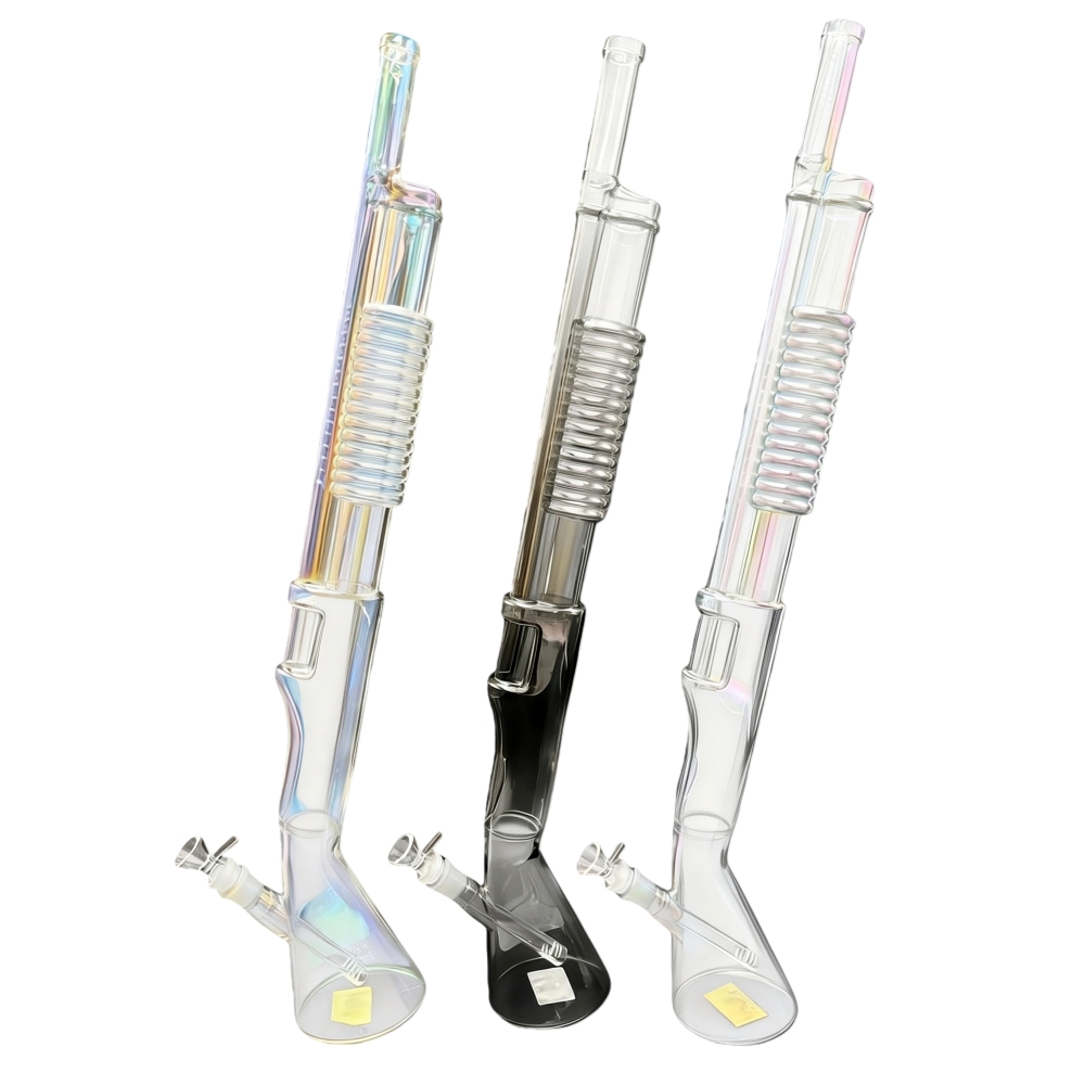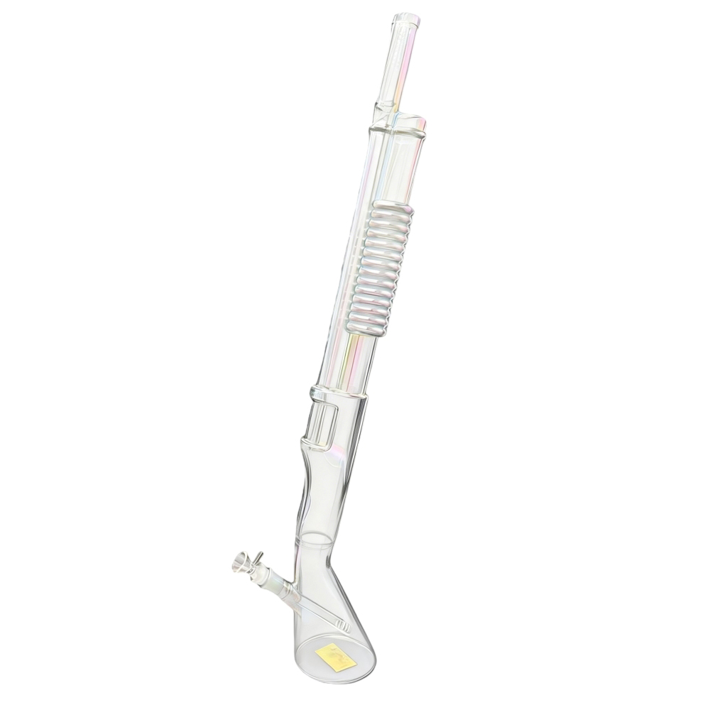 Its tall 26.5-inch height provides excellent smoke cooling and filtration, while the gun-style design enhances airflow and delivers smooth, satisfying hits. The 14mm female joint is compatible with standard bowls and accessories, making this bong both functional and versatile. Ideal for experienced users and high-impact retail displays.