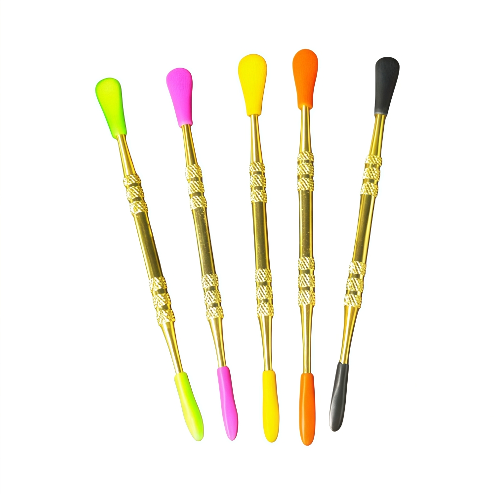 Designed with a two-sided functional design, each dabber has a spoon on one end and a spear on the other, making them ideal for handling concentrates of all types. The silicone sleeves add extra durability, comfort, and safety, making this 50-piece jar perfect for personal use, retail display, or gifting.
