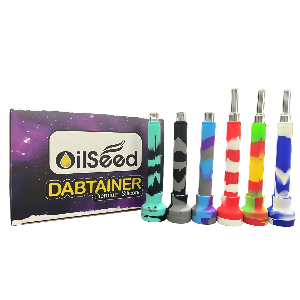 Enjoy durable, stylish dabbing with the OilSeed Dabtainer Silicone Straw, featuring a sturdy silicone body in assorted vibrant colors and a premium quartz glass tip for clean, flavorful hits. Designed for ease of use and portability, this straw is perfect for concentrate enthusiasts seeking quality and convenience.