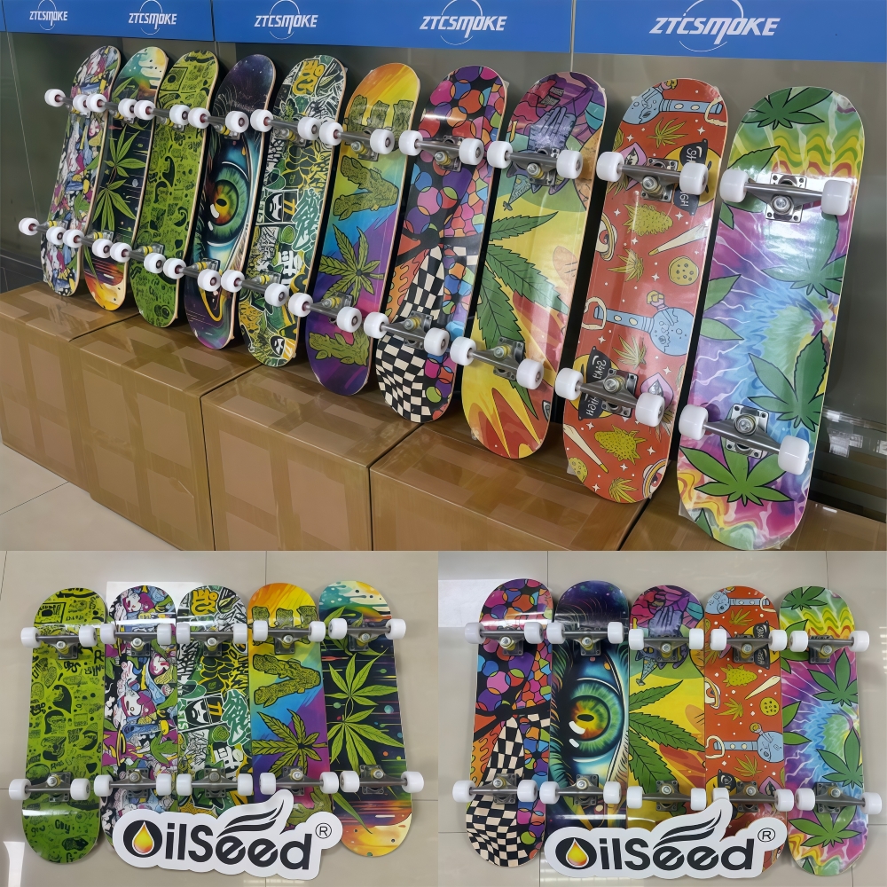 The OilSeed Limited Edition Skateboard — Weed Series is a high-quality, collectible skateboard designed for performance and style. Crafted from a 7-layer maple deck, it offers excellent strength, flexibility, and durability, making it ideal for both casual riding and tricks.