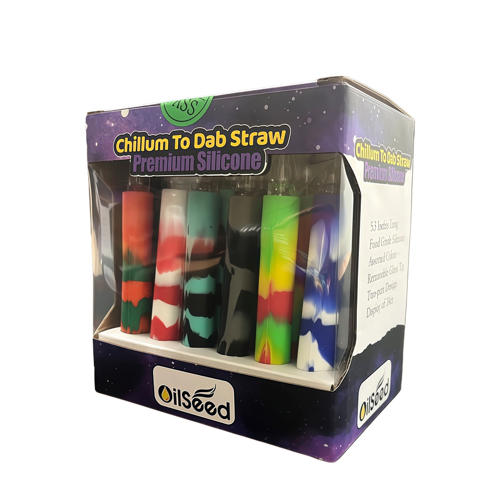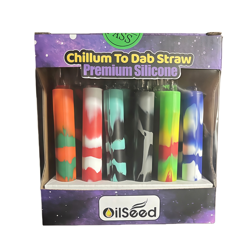 OilSeed Chillum to Straw with Silicone Tube – Assorted Colors | Display of 24 | 12 Displays/Case